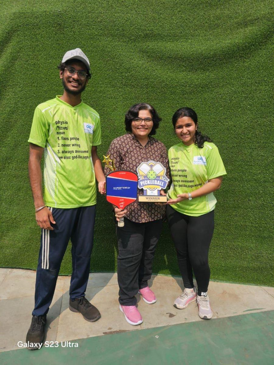 We are proud to share that Krishna Khandelwal and Nia Mehta from the third year emerged victorious in the Mixed Doubles category at the Pickleball Tournament held in Ghatkopar.