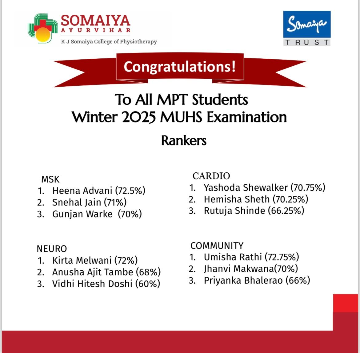 Heartiest congratulations to all our MPT Rankers