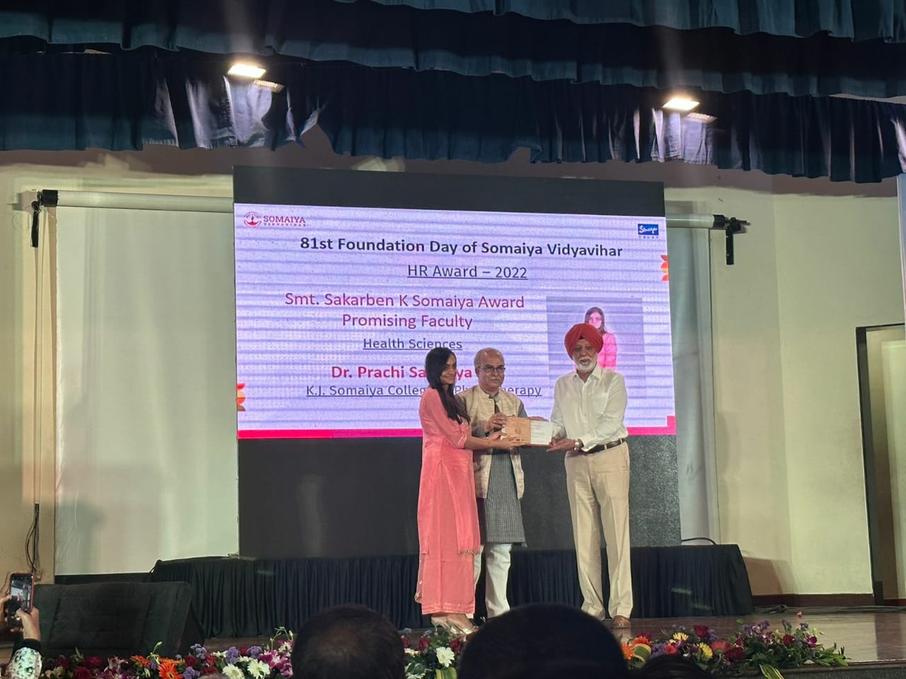 Congratulations Dr Prachi Sarvaiya (PT) for winning Smt Sakarben K Somaiya Award for Promising Faculty Health Sciences on the occasion of Somaiya VidyaVihar's 81st Foundation Day, 9th September 2022